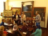 Als ze door de grote monumentale deur de oude school betreden, zetten de kinderen echt een stap terug in het verleden. De betegelde gang is precies zoals hij vroeger was. Op de oude kapstokjes kunnen ze vervolgens de jassen kwijt en dan allemaal in de rij, keurig netjes twee aan twee naar binnen. En de mond op slot natuurlijk want zo ging dat vroeger… Vervolgens komen ze terecht in de klas van hun opa’s en oma’s, en mogen ze op aangeven van de leraar in de oude schoolbanken plaatsnemen. Na een lesje geschiedenis mogen ze zelf ook schrijven met de griffel en de kroontjespen. Het is allemaal te zien, te horen en te beleven in het Scheepstra Kabinet. Een boeiende praktijkles over het schoolleven van vroeger!